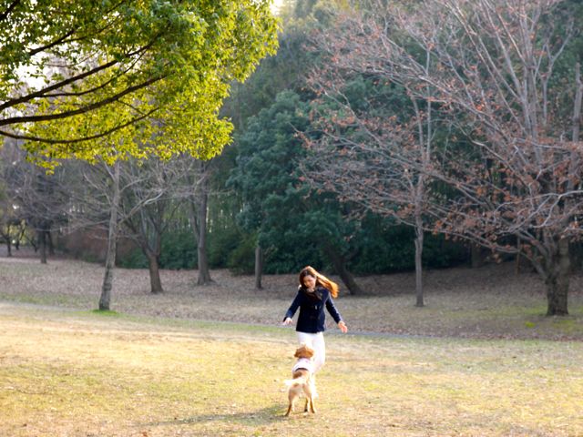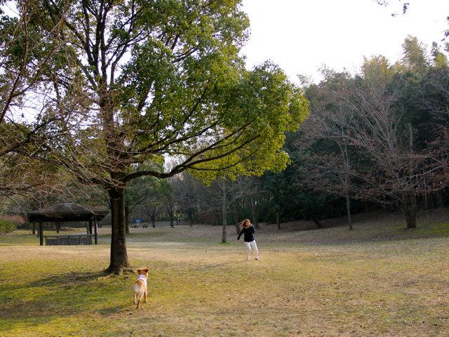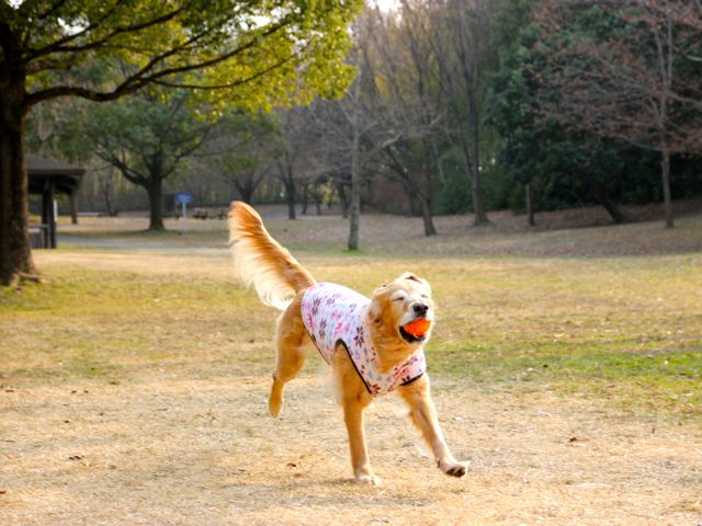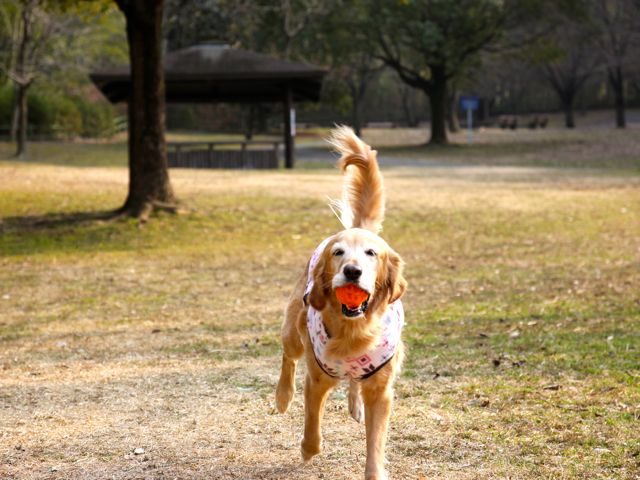 愛犬と一緒に走ったり、ボール遊びしたり…