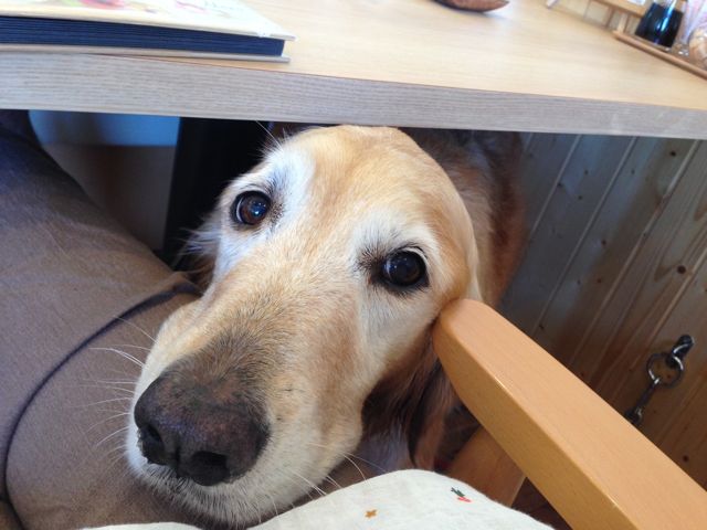 テーブルの下でお裾分け待ちのクレア(≧∇≦)