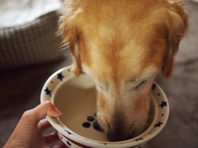 *ドライフードは、お湯でふやかしてからあげる。