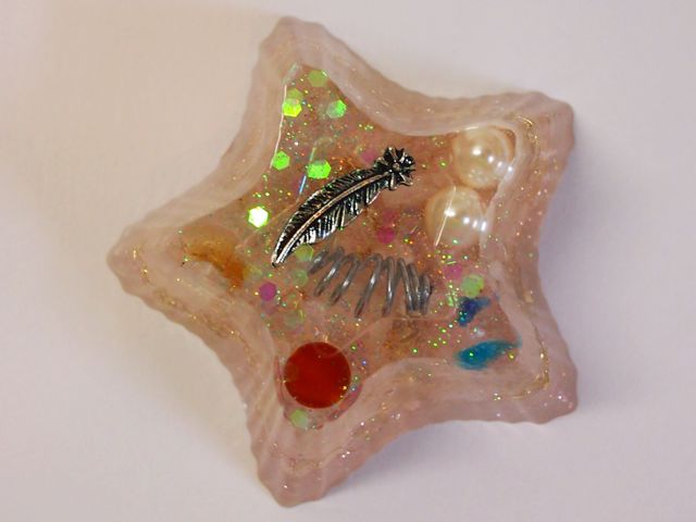 - オルゴナイトの上にパワーストーンのアクセサリーを置く。(浄化)