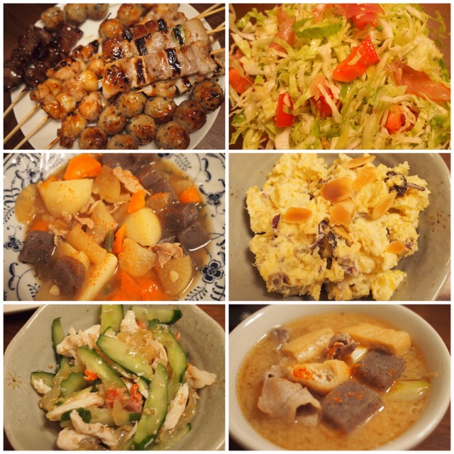 さつまいもサラダ、バンバンジー、豚汁…